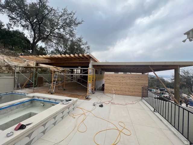 At TWT Exteriors & Roofing, we’re committed to creating outdoor spaces that perfectly match our clients’ vision and lifestyle. For our client in Lakeway, Texas, we designed a custom carport, a poolside cabana with a bathroom, an outdoor kitchen, and a dedicated storage area. Each feature was thoughtfully crafted to blend seamlessly with the home while enhancing both function and style.