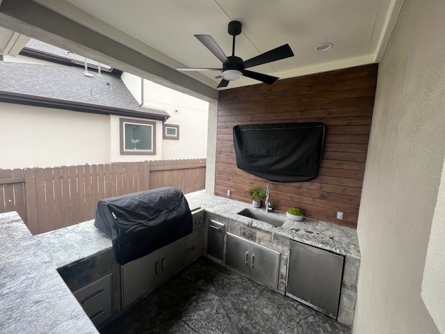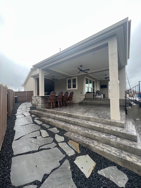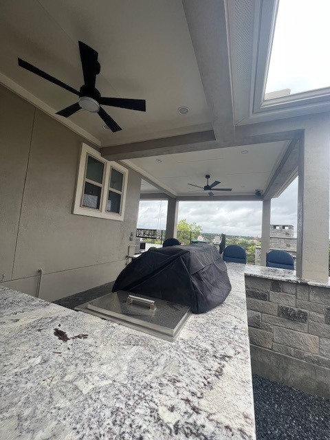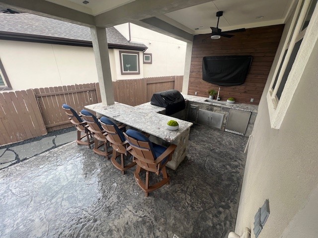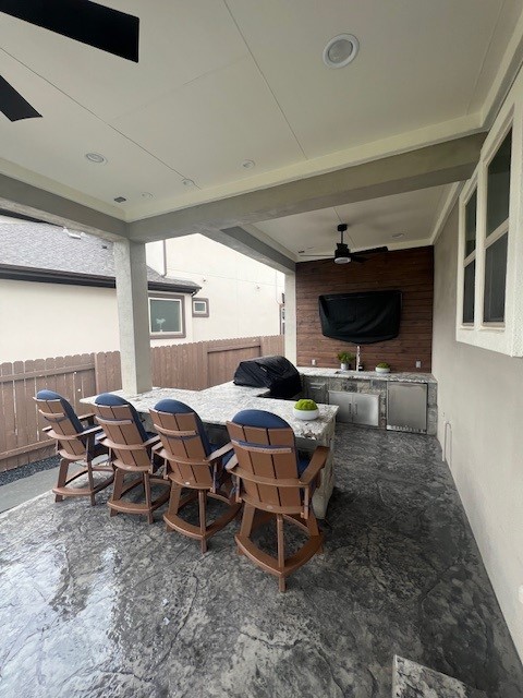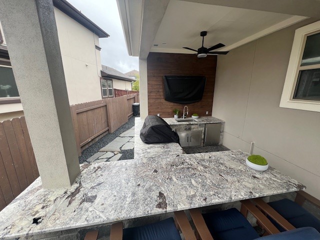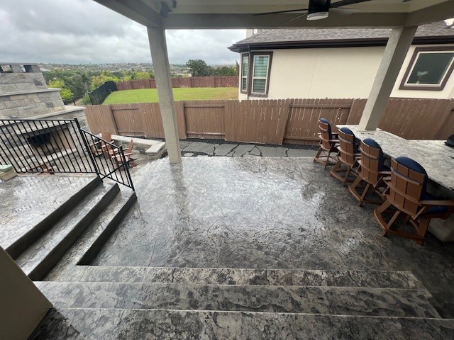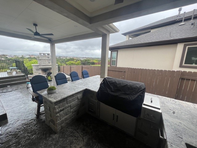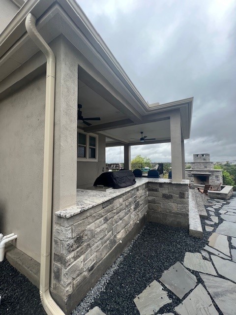 At TWT Exteriors & Roofing, our goal is to create one-of-a-kind spaces where clients feel comfortable enough to call their own. When our client envisioned a customized living area that combined functionality with beauty, we were ready to make it a reality. The project included a fully equipped outdoor kitchen, a beautiful fireplace that served as the focal point, a stylish patio cover, and stamped concrete to accentuate the space. This custom design was crafted with family entertaining in mind, adding significant value to their home. We worked closely with the client to ensure every detail reflected their vision, resulting in a space they can enjoy for years to come.